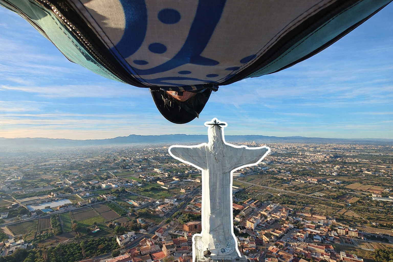 scenic wingsuit flight beneath the arm of the Christ of Monteagudo - Murcia, Spain